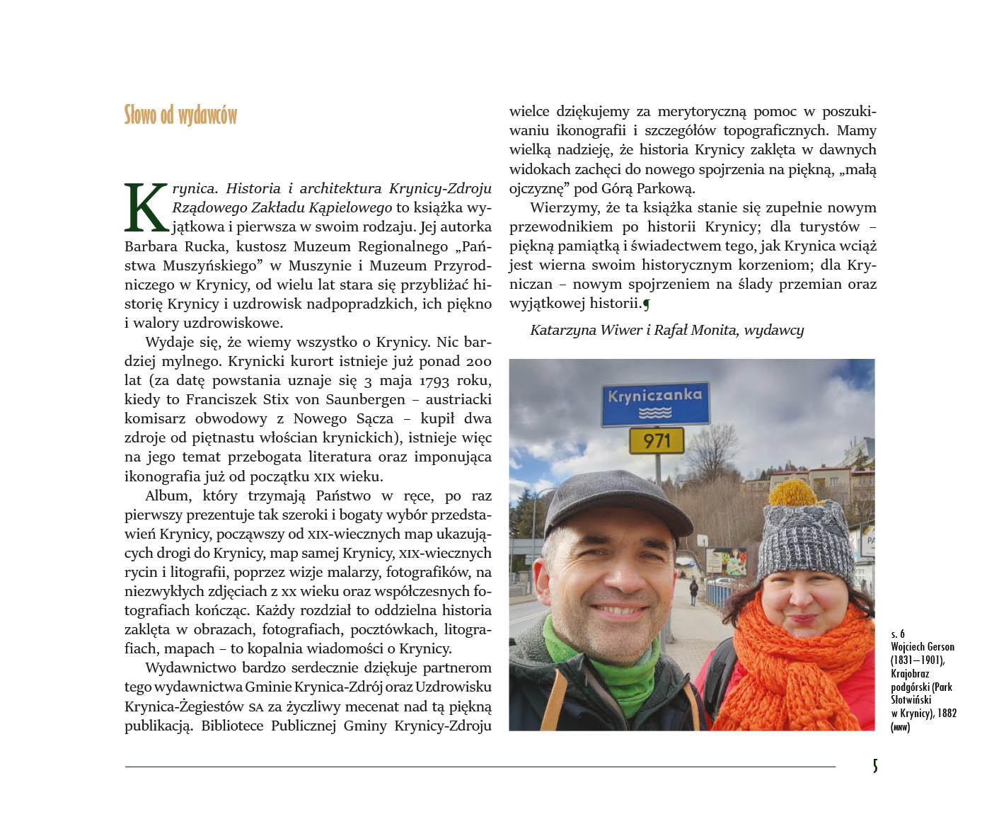Partnerem wydania jest Gmina Krynica-Zdrój oraz Uzdrowisko Krynica-Żegiestów.