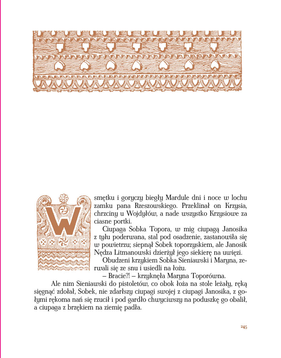 Również to dzieło staraliśmy się przygotować w starannie dobranej oprawie graficznej oraz typograficznej. Wydanie przygotowaliśmy w oparciu o to pierwsze z roku 1912, a zdobią je także wysmakowane drzeworyty Władysława Skoczylasa, które pojawiły się już w kolejnych po tym pierwszym wydaniach. Ponownie, zachowując wygląd serii, zastosowaliśmy do tytułów font o nazwie Secesja, który jest twórczą adaptacją stylu Młodej Polski, zaprojektowaną przez typografa Brendana Cieckę, bazujący na czcionce nieznanego autorstwa zastosowanej na plakacie z 1908 roku.
