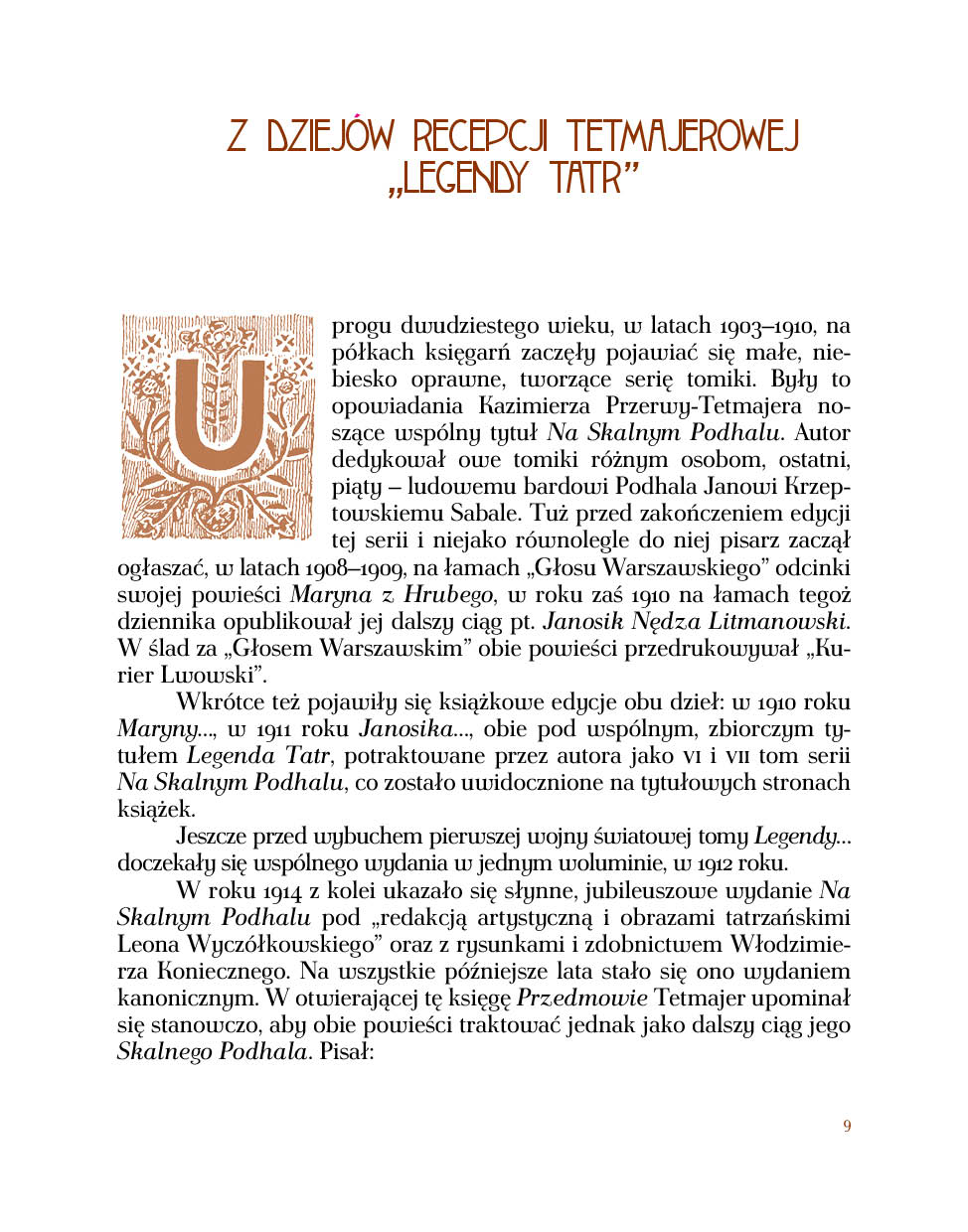 Z dziejów recepcji tetmajerowej Legendy Tatr (Wiesław W. Wójcik)