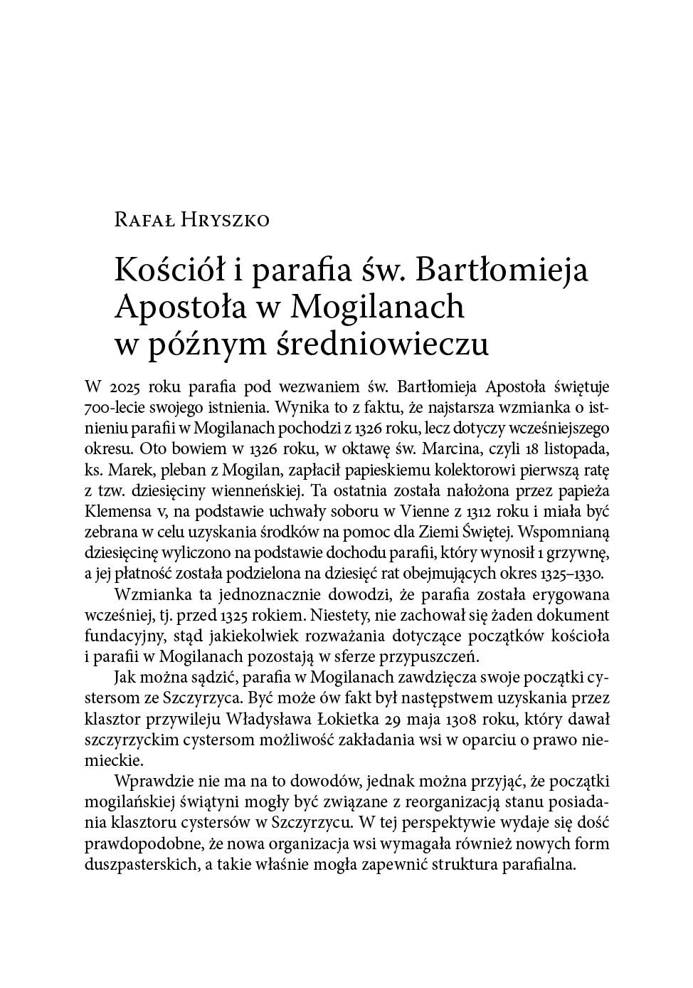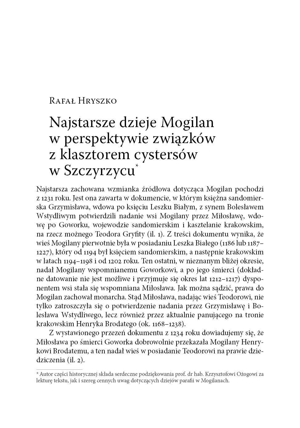 Rafał Hryszko Najstarsze dzieje Mogilan w perspektywie związków z klasztorem cystersów w Szczyrzycu