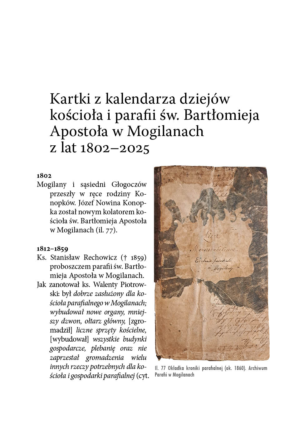 Kartki z kalendarza dziejów kościoła i parafii św. Bartłomieja Apostoła w Mogilanach z lat 1802–2025