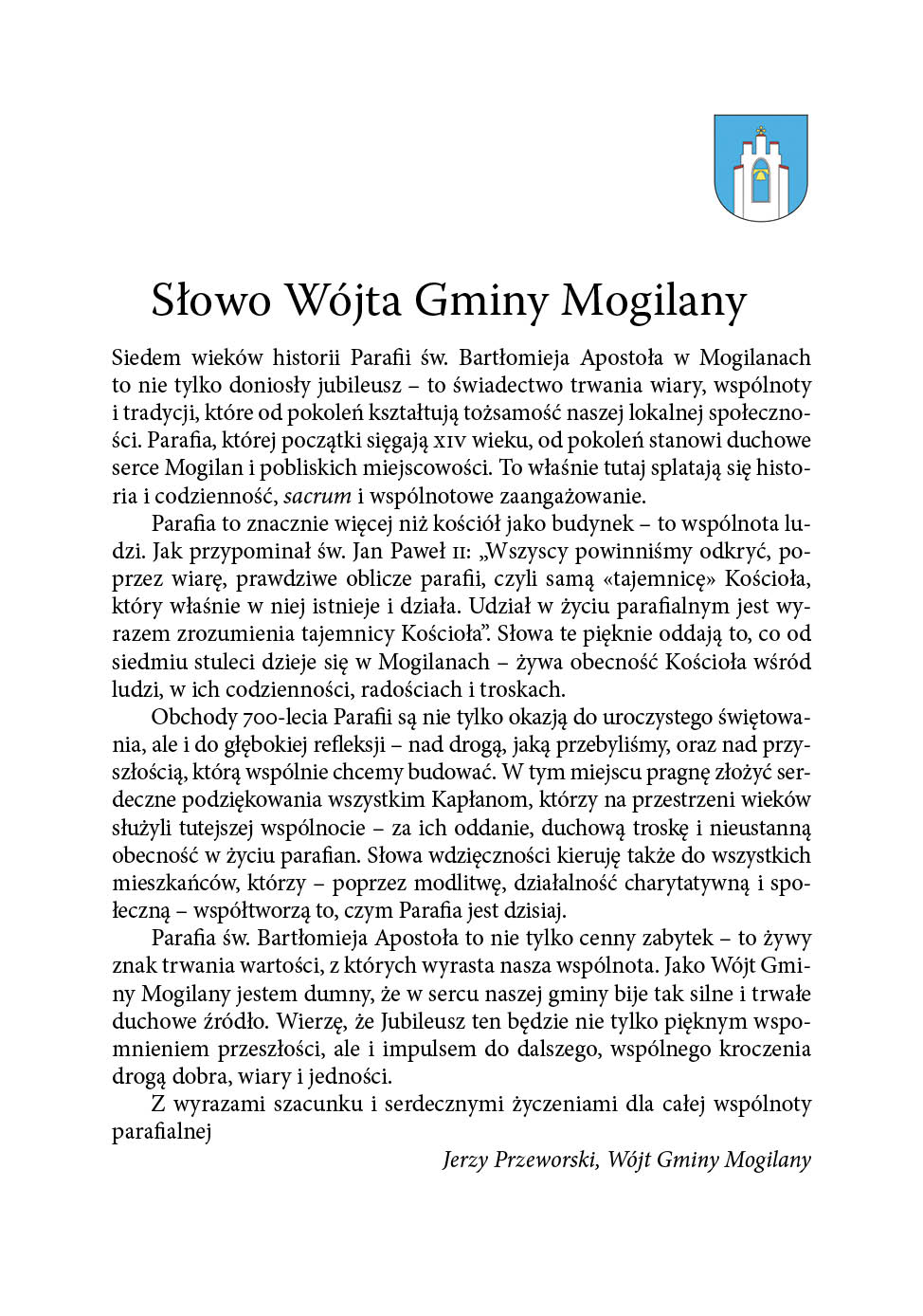 Słowo Wójta Gminy Mogilany (Jerzy Przeworski)